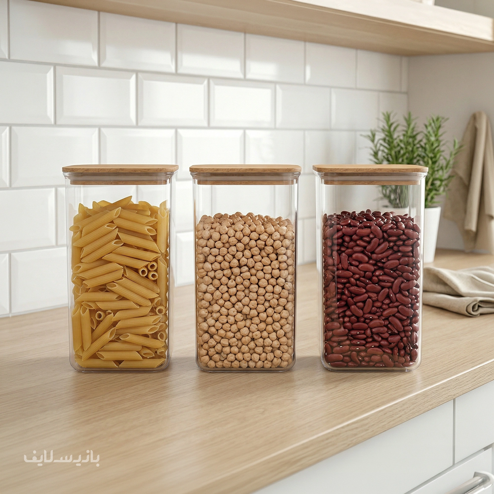 ست 3 عددی بانکه حبوبات بانیس مدل درب چوبی، انتخابی کاربردی و زیبا برای نظمدهی به آشپزخانه است. طراحی شفاف بدنه باعث میشود محتویات داخل هر بانکه بهراحتی دیده شود و دسترسی به حبوبات، ماکارونی، خشکبار و سایر مواد غذایی سادهتر باشد. درب چوبی این محصول در کنار ظاهر مینیمال و گرم، جلوهای شیک به فضای آشپزخانه میدهد و آن را برای استفاده روی کابینت، داخل قفسه یا روی اپن مناسب میکند. همچنین وجود واشر در درب، به نگهداری بهتر مواد غذایی و جلوگیری از ورود هوا و رطوبت کمک میکند تا مواد داخل بانکهها تازهتر بمانند. این ست سهعددی، هم برای استفاده روزمره گزینهای مناسب است و هم برای افرادی که به چیدمان منظم و زیبای آشپزخانه اهمیت میدهند، انتخابی ایدهآل به شمار میآید.